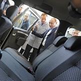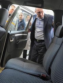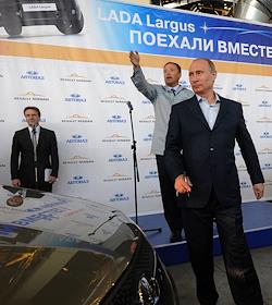 Председатель правительства России Владимир Путин (справа) на церемонии запуска серийного производства автомобиля "Лада-Ларгус" на "АвтоВАЗе".