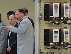 Председатель правительства России Владимир Путин (слева) и президент ОАО "АвтоВАЗ" Игорь Комаров (справа) на церемонии запуска серийного производства автомобиля "Лада-Ларгус" на "АвтоВАЗе".