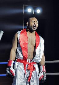 Боксерское шоу "Звездный ринг". Боксер из Барбадоса Шон Кокс после боя за титул чемпиона мира по версии WBA. Шоу состоялось в Crocus City Hall.