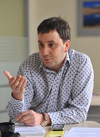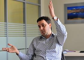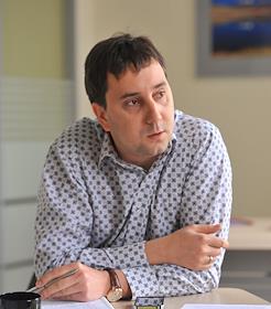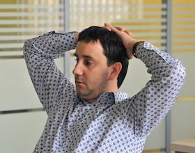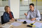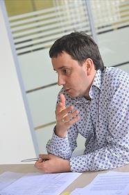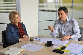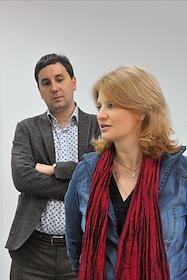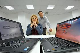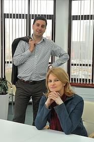 Президент группы QIWI Андрей Романенко (слева) и генеральный директор компании "Инфовоч" (InfoWatch)Наталья Касперская (справа) во время интервью.