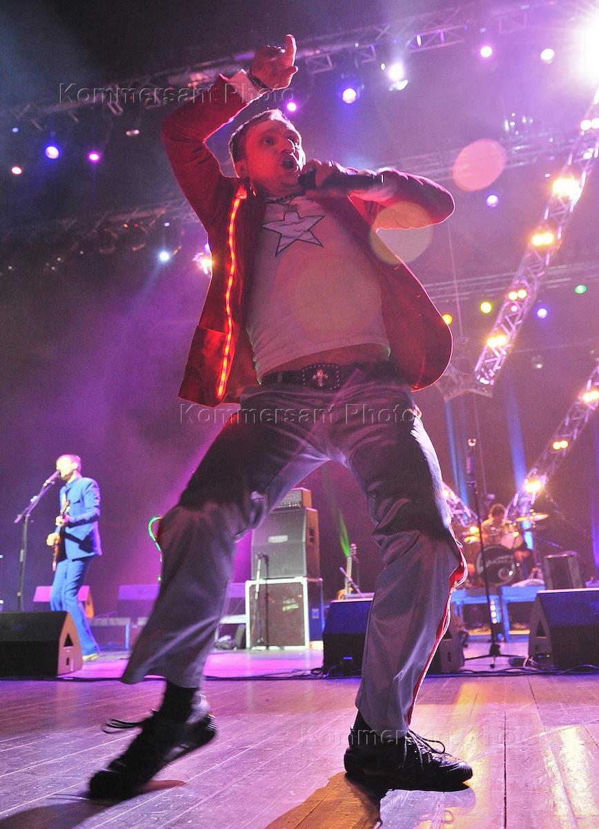 Лидер группы "Вопли Видоплясова" (ВВ) Олег Скрипка (справа) во время выступления на сольном концерте группы в Crocus City Hall.