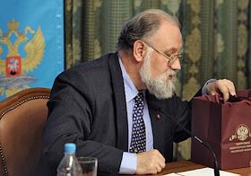 Председатель Центральной избирательной комиссии (ЦИК) России Владимир Чуров во время пресс-конференции на тему: "Итоги работы миссий по международному наблюдению за выборами в Государственную думу Федерального Собрания Российской Федерации 4 декабря 2011 года и президента Российской Федерации 4 марта 2012 года". Пресс-конференция прошла в пресс-центре МИД России.