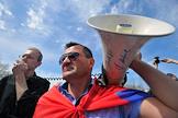 Бывший кандидат в мэры Астрахани Олег Шеин во время несанционированной забастовки автоперевозчиков Астрахини на площади у "Центрального" стадиона.