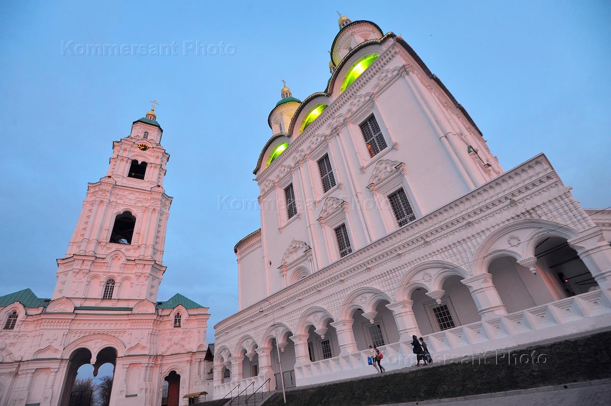 Виды Астрахани. Колокольня и Успенский собор Астраханского кремля.