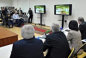 Члены Центральной избирательной комиссии (ЦИК) России во время просмотра видеозаписи с избирательных участков Астрахани в день выборов мэра.