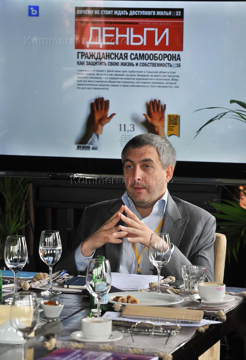 Главный редактор "КоммерсантЪ FM" Дмитрий Солопов во время встречи телерадиокомпаний "Коммерсантъ" на тему: "Объединение и синергия медийных ресурсов в корпорации - challenge и новые возможности" в рамках весенней серии бизнес-завтраков с АКМР". Встерча прошла в центре "Digital October".