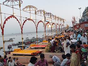 Виды Индии. Город Варанаси. Представление - ритуал чествования Ганги с огнями на набережной реки.