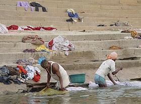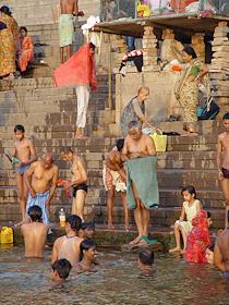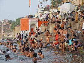 Виды Индии. Город Варанаси. Утреннее купание в священной реке Ганг.