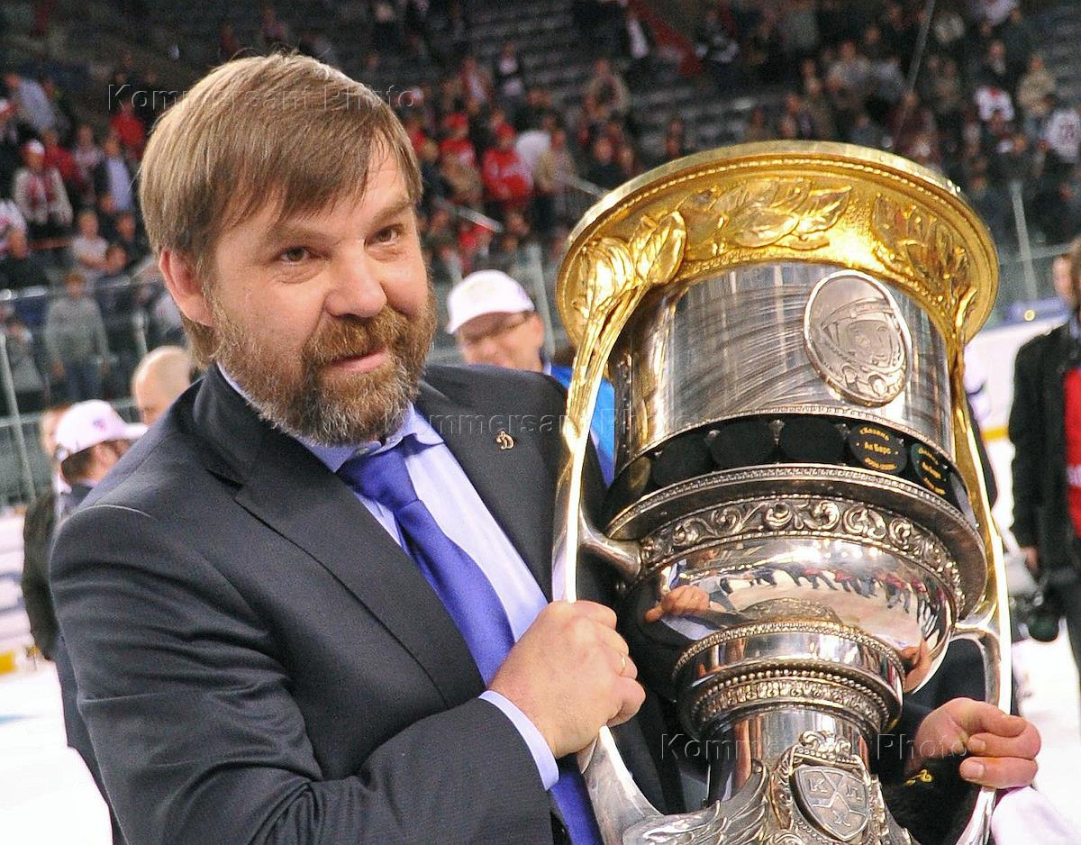 Континентальная хоккейная лига (КХЛ). Кубок Гагарина. Финал. Матч между командами "Авангард" (Омск) и "Динамо" (Москва) прошел в ледовом дворце "Арена-Омск". Команда "Динамо" стала обладателем Кубка Гагарина. Главный тренер "Динамо" Олег Знарок с кубком во время празднования победы своей команды.
