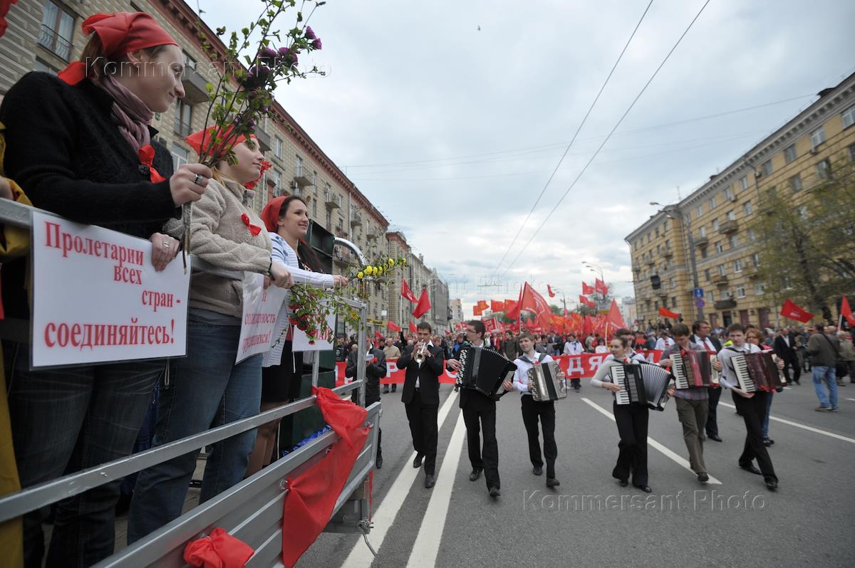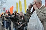 Первомайское шествия сторонников Коммунистической партии России (КПРФ), проходящего от Калужской до Театральной площади. Фотографи во время работы на шествии.