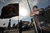 Участники первомайского шествия сторонников Коммунистической партии России (КПРФ), проходящего от Калужской до Театральной площади. Плакат с надписью "Руссовет".