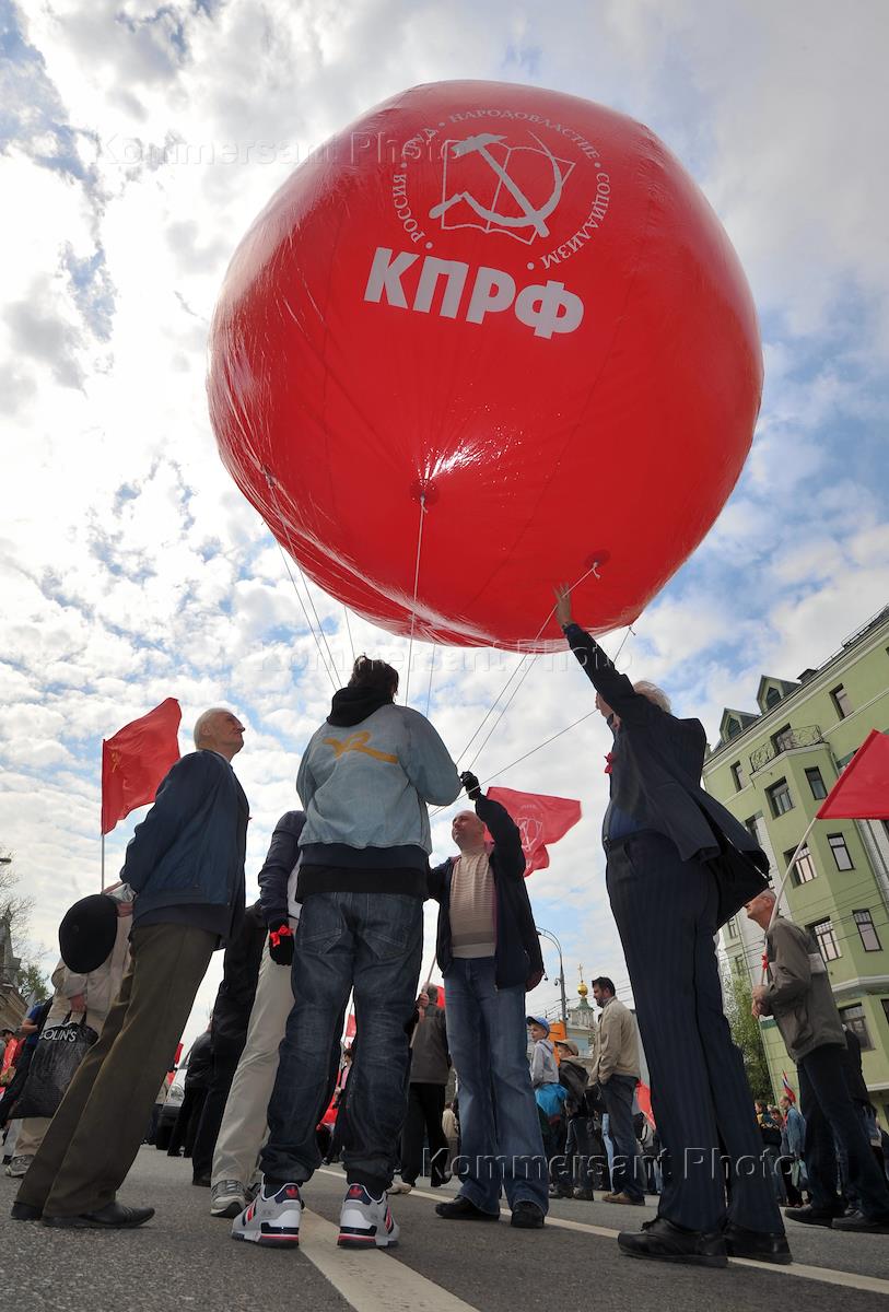 Участники первомайского шествия сторонников Коммунистической партии России (КПРФ), проходящего от Калужской до Театральной площади.