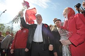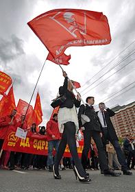Participants of the May Day procession of supporters of the Communist Party of Russia (CPRF).