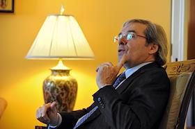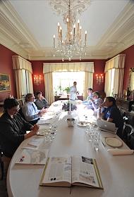 Чрезвычайный и полномочный посол Канады в России Джон Си Слоан во время дегустациии вин в посольстве Канады.