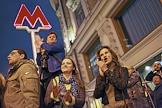Репетиция Военного парада Дня Победы в центре Москвы. Зрители на Тверской улице во время репетиции.
