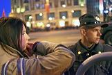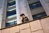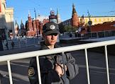 Репетиция Военного парада Дня Победы в центре Москвы. Сотрудник полиции на Тверской улице во время репетиции.