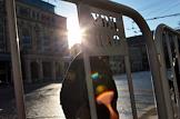 Репетиция Военного парада Дня Победы в центре Москвы. Перекрытая Манежная площадь перед началом репетиции.