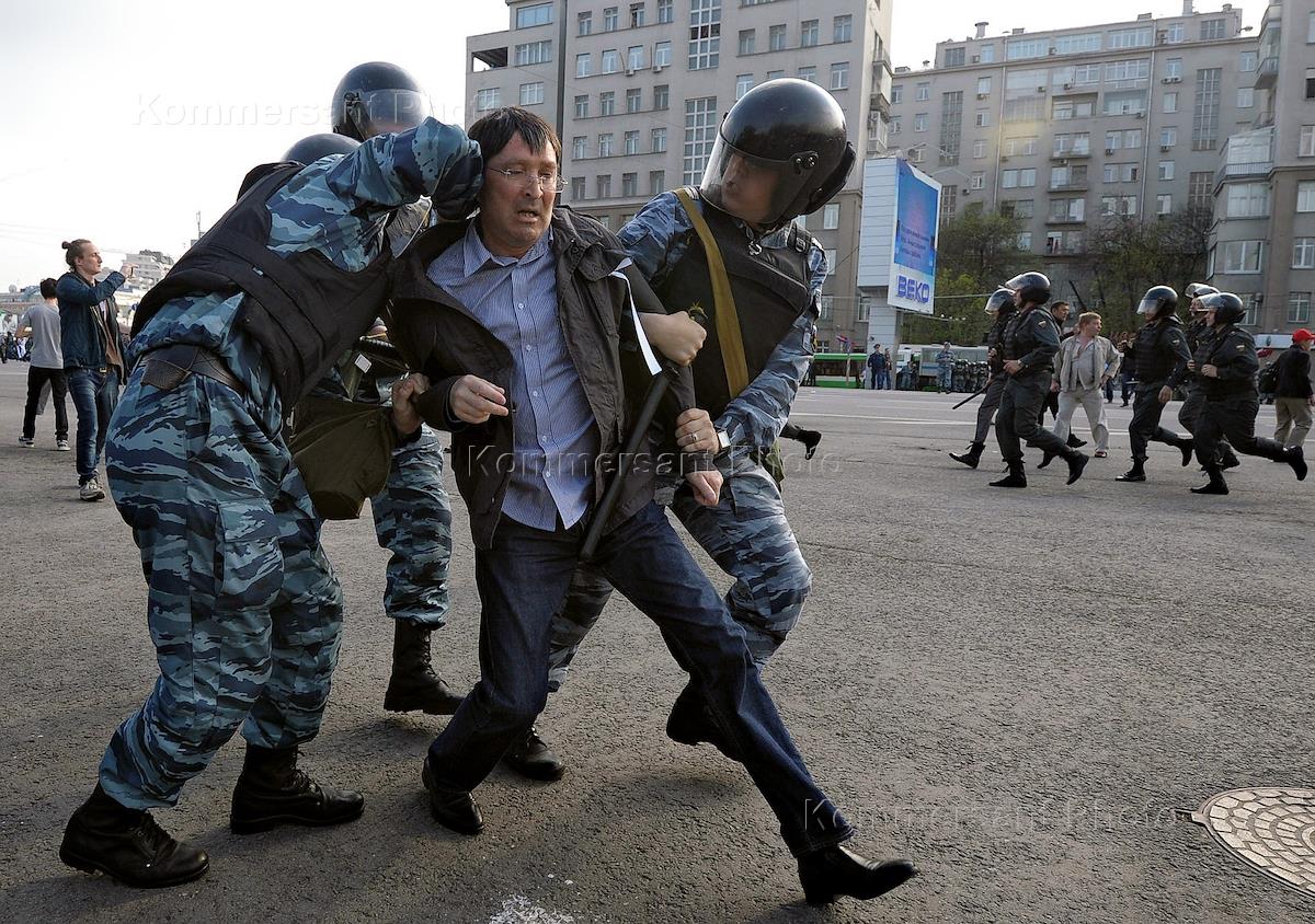 Акция оппозиции "Марш миллионов", против инаугурации президента России Владимира Путина с требованием досрочных выборов и политических реформ. Участники акции прошли по Якиманке до Болотной площади. Сотрудники праоохранительных органов во время задержания участников акции.