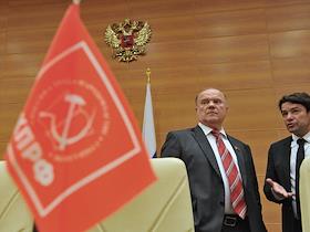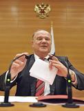 Лидер Коммунистической партии Российской Федерации Геннадий Зюганов во время встречи с кандидатом на пост премьер-министра России Дмитрием Медведевым в малом зале Государственной думы России.