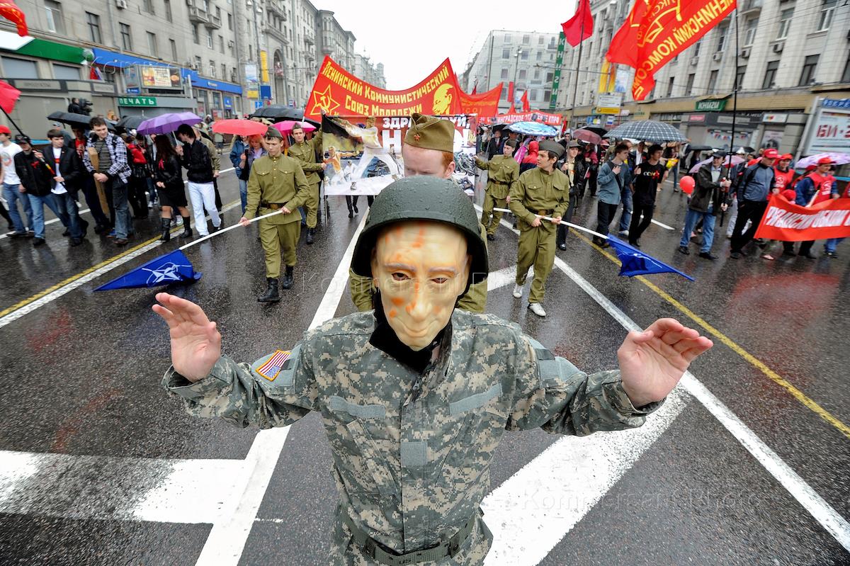 Демонстрация и митинг в день 67-й годовщины Победы в Второй мировой войне, организованный Коммунистической партией России КПРФ. Участники акции прошли от Пушкинской до Лубянской площади.