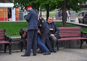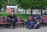 Празднование Дня Победы. Отдыхающие во время народных гуляний на Манежной площади.