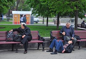 Празднование Дня Победы. Отдыхающие во время народных гуляний на площади Революции.