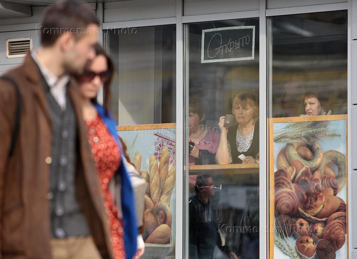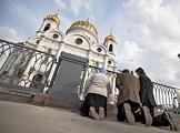 Жанровая фотография. Верующие на площади у храма Христа Спасителя.