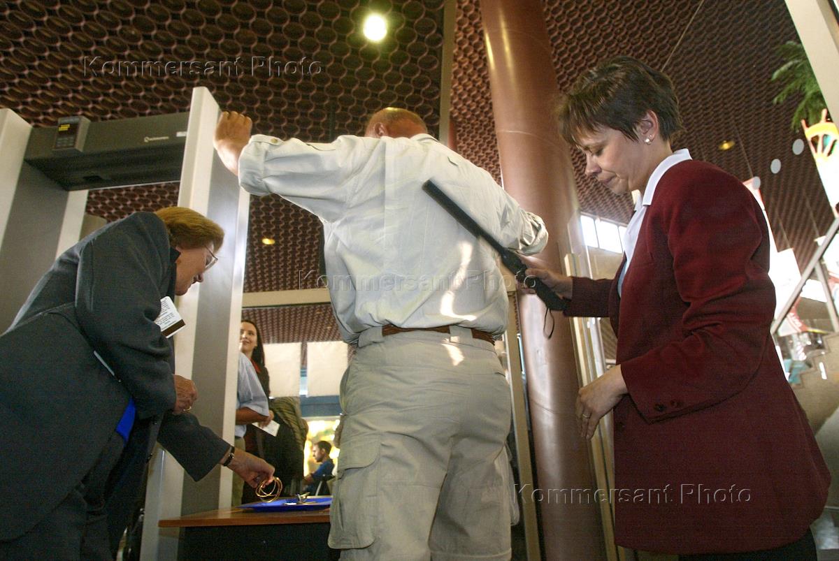 Passenegers are screened before coming aboard a plane at the Sheremetevo-2 airport.