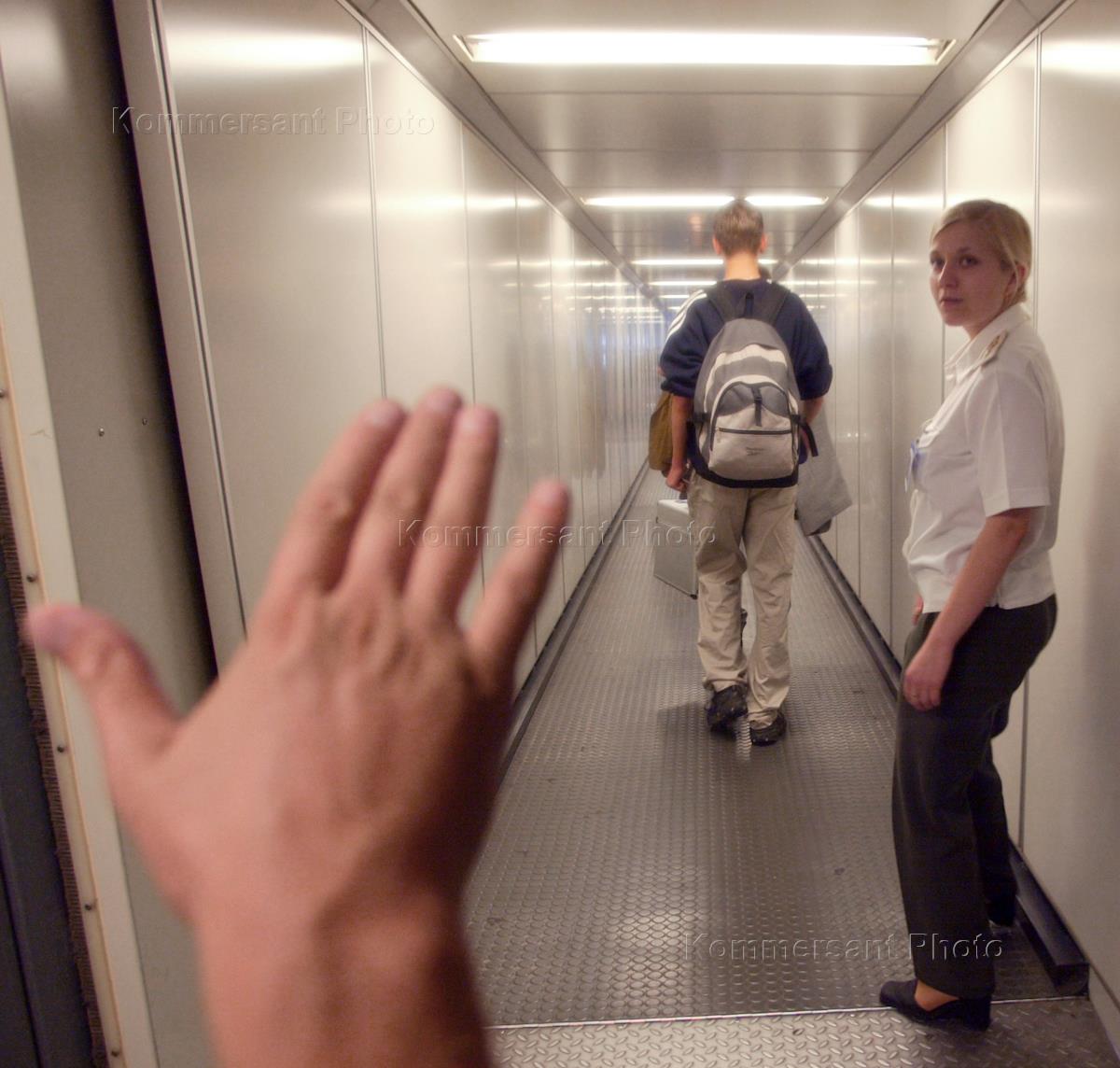 A passenger passes through the pre-flight control at the Sheremetyevo-2 airport.