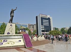 Виды Баку. Памятник бывшему президенту Азербайджана Гейдару Алиеву.
