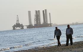 Виды Баку. Морской грузовой порт на Каспийском море.