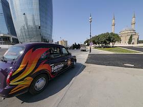 Подготовка города Баку к Международному песенному конкурсу "Евровидение-2012". Автомобиль с надписью Eurovision/