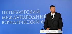 II Петербургский международный юридический форум. Исполняющий обязанности министра юстиции России Александр Коновалов во время работы форума.