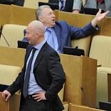 Заместитель председателя Государственной думы, член комитета ГД по конституционному законодательству и государственному строительству Игорь Лебедев (слева) и лидер Либерально-демократической партии России (ЛДПР), член комитета ГД по обороне Владимир Жириновский (справа) во время заседания Госдумы.