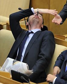 Лидер партии "Справедливая Россия", член комитета Государственной думы по жилищной политике и жилищно-коммунальному хозяйству Сергей Миронов (справа) во время заседания Госдумы.