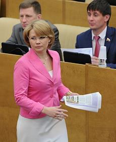 Член Комитета Государственной думы России по собственности Екатерина Семенова во время заседания Госдумы.