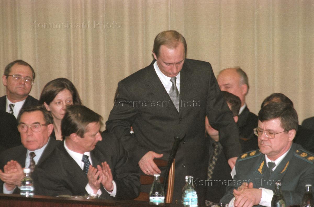 Исполняющий обязанности Президента России, председатель правительства Владимир Путин (в центре) среди участников расширенного заседания коллегии министерства юстиции России. Министр юстиции России Юрий Чайка (справа).