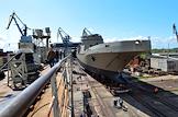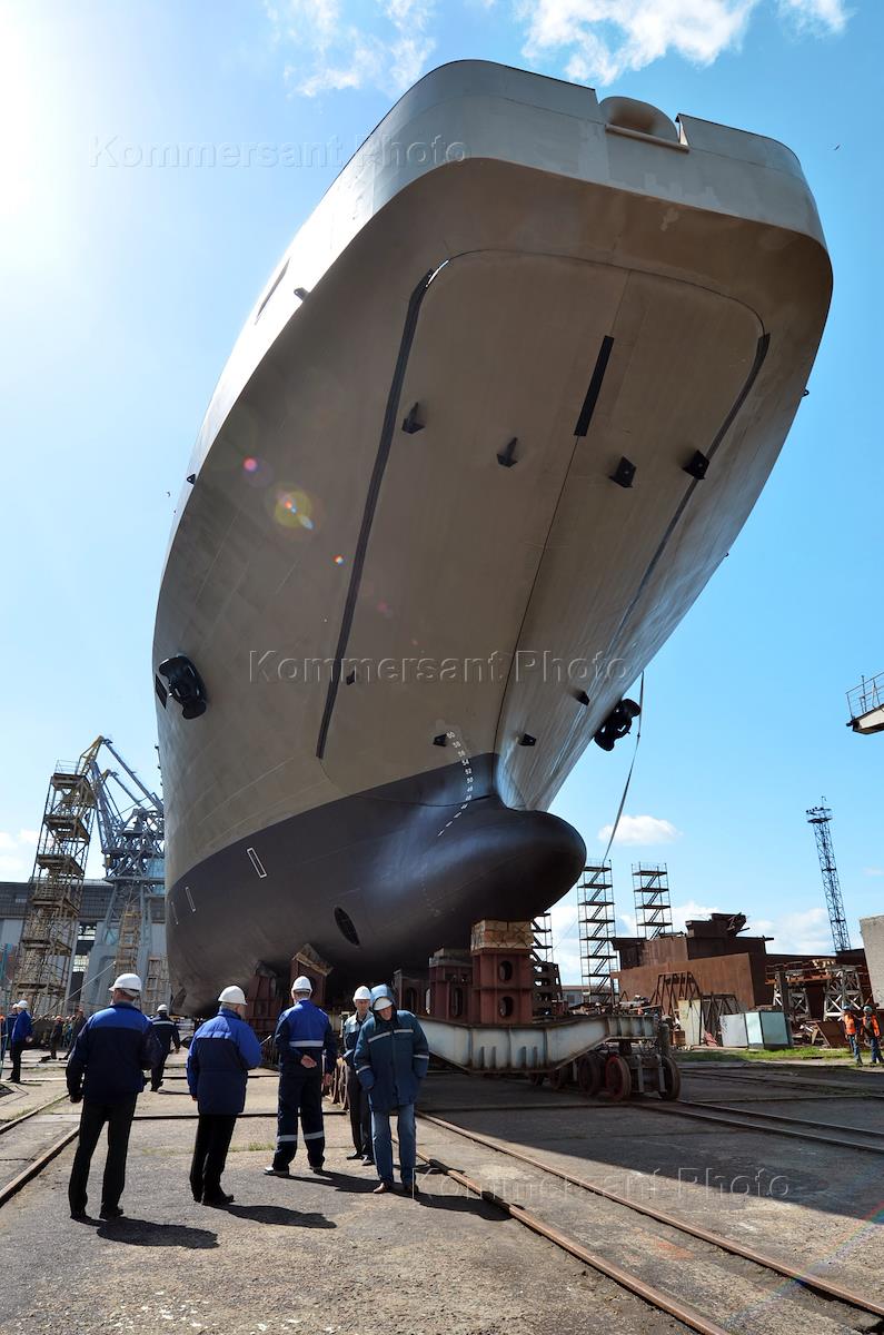 Церемония спуска на воду головного корабля нового проекта 11711 "Иван Грен" прошла на Прибалтийском судостроительном заводе "Янтарь".