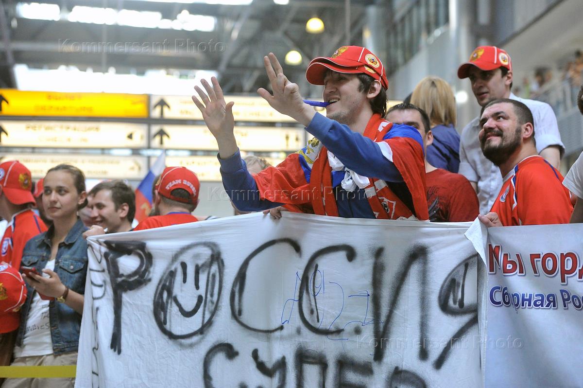 Встреча игроков сборной России по хоккею после Чемпионата мира в Финляндии/Швеции в аэропорту "Шереметьево".