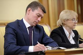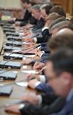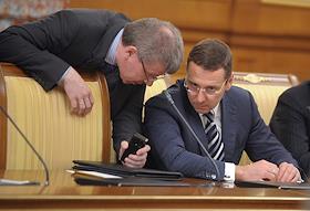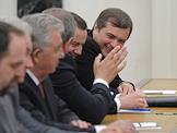 Церемония представление членов нового правительства России в Доме правительства. Слева направо: министр регионального развития Олег Говорун, министр по связям с Открытым правительством Михаил Абызов и заместитель председателя правительства, полномочный представитель президента России в Северо-Кавказском федеральном округе Александр Хлопонин во время церемонии.