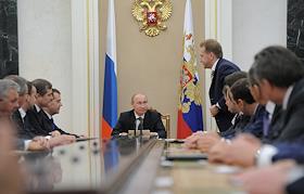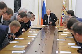Церемония представления членов нового правительства России в Кремле. Президент России Владимир Путин (в центре) и первый заместитель председателя правительства России Игорь Шувалов (справа) во время церемонии.