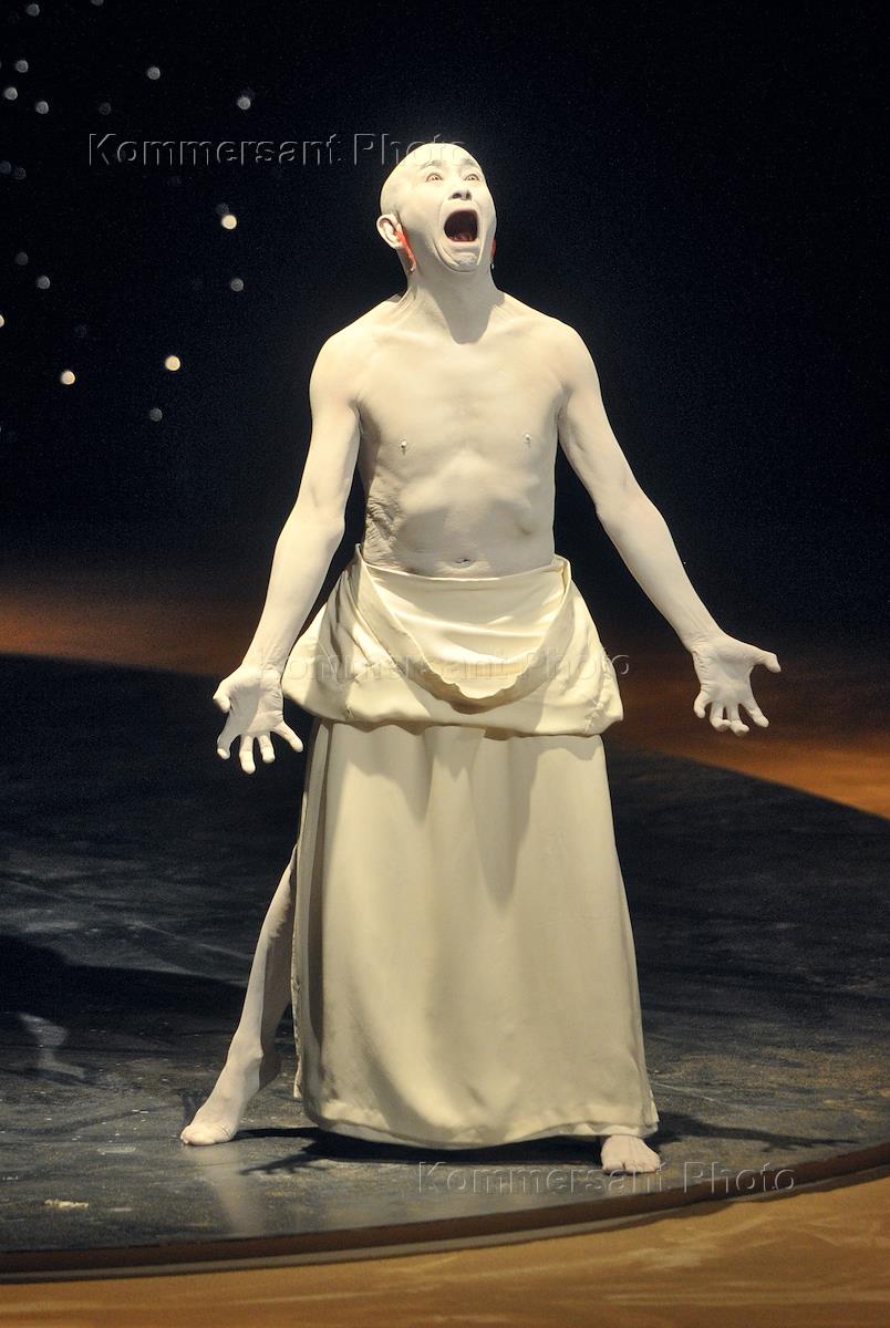Спектакль "Тобари - в бесконечном потоке" Театра современного японского танца "Санкай Дзюку" (танцевальное течение Буто) на сцене театра Российского академического молодежного театра (РАМТ).