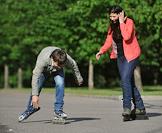 Соучредитель и генеральный директор ООО "Ремко-М" Евгений Савенко (справа) с супругой во время катания на роликах в Парке Победы на Поклонной горе.