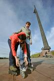 Соучредитель и генеральный директор ООО "Ремко-М" Евгений Савенко (слева) с супругой во время катания на роликах в Парке Победы на Поклонной горе.