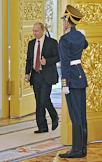 Президент России Владимир Путин (слева) перед началом церемонии вручения ордена "Родительская слава" многодетным родителям в Александровском зале Большого Кремлевского дворца.