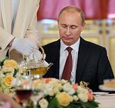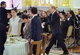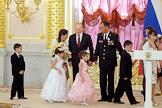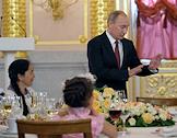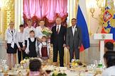 Президент России Владимир Путин за столом с семьей Мороковых из Сыктывкара после церемонии вручения многодетным родителям орденов "Родительская слава" в Александровском зале Большого Кремлевского дворца.