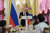 Президент России Владимир Путин во время церемонии вручения ордена "Родительская слава" в Кремле.