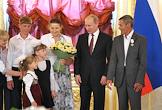 Церемония награждения президентом России Владимиром Путиным многодетных родителей, воспитывающих от 7 до 13 детей, орденом "Родительская слава". Церемония состоялась в Александровском зале Большого Кремлевского дворца и была приурочена к Международному дню защиты детей.