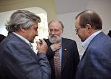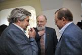 Оглашение "Списка финалистов" седьмого сезона Национальной премии "Большая книга". Слева направо: главный редактор "Российской газеты" Владислав Фронин, заместитель руководителя Федерального агентства по печати и массовым коммуникациям Владимир Григорьев и председатель Центризбиркома России Владимир Чуров на Литературном обеде в ГУМе.