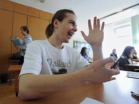 Школьники перед сдачей Единого Государственного экзамена (ЕГЭ) по французскому языку в "Школе здоровья" №149.